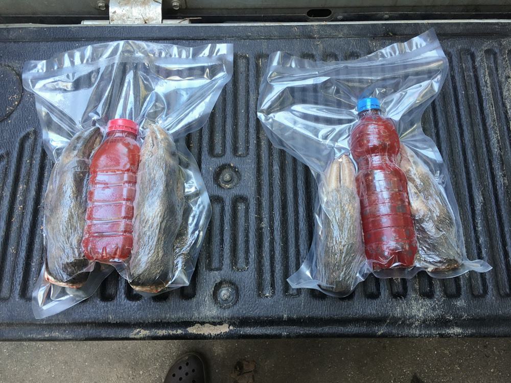 Schalen und Schweiss vom Schwarzwild werden gesammelt und passend portioniert eingefroren.
