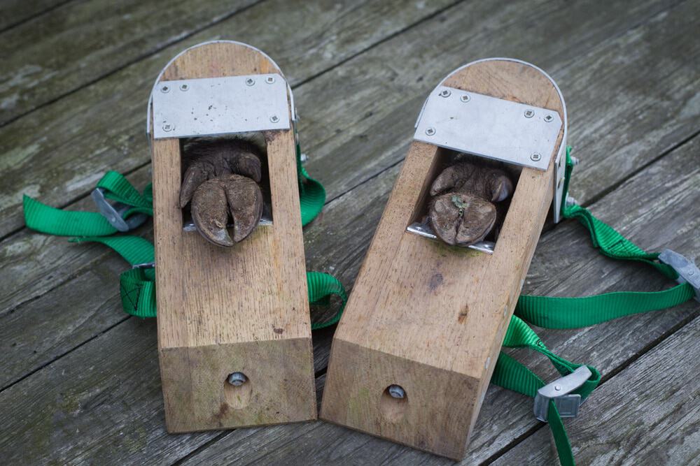 Zum Legen der Fährte werden Fährtenschuhe benötigt. Die neue Ordnung für Verbandsfährtenschuhprüfungen (VFSPO) besagt, dass zum Legen der Prüfungsfährten nur Schuhe mit durchgängig aus einem Material bestehenden Sohlen zu verwenden sind.
