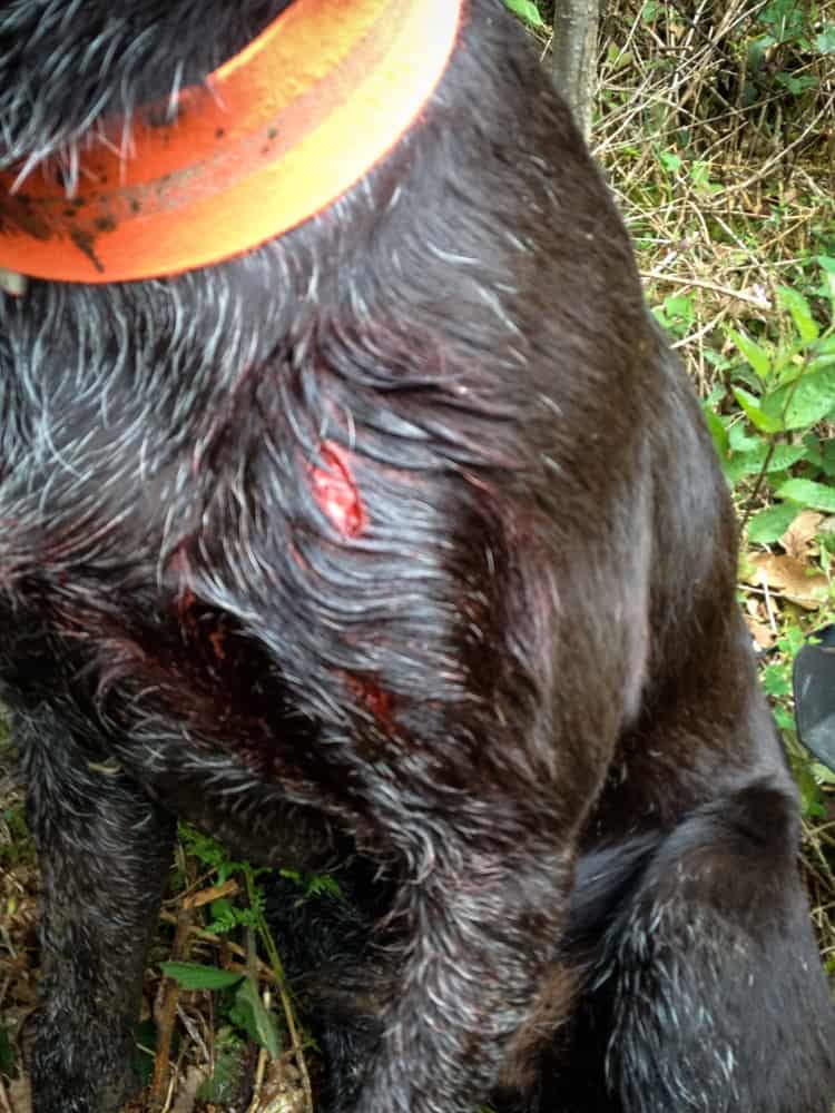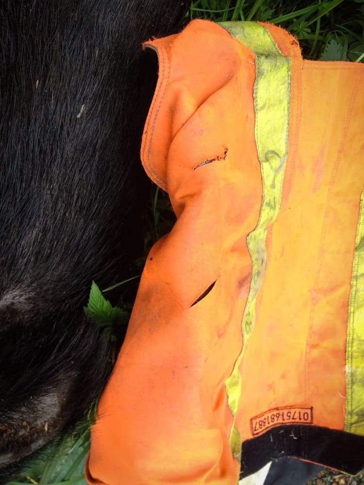 Stichverletzungen durch Keilerwaffen, trotz Schutzweste – nicht auszudenken, welche Verletzungen ohne Weste entstanden wären.