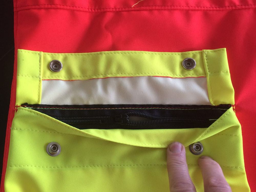 Jede Jacke bekommt übrigens vom Hersteller eine individuelle, in der Tasche eingestempelte Seriennummer – so ist es auch nach Jahren noch möglich, exakt dieselbe Jacke nachzubestellen. Die neuen Modelle (rechts im Bild) sind übrigens aus extrem gut sichtbaren Leuchtrot gefertigt.