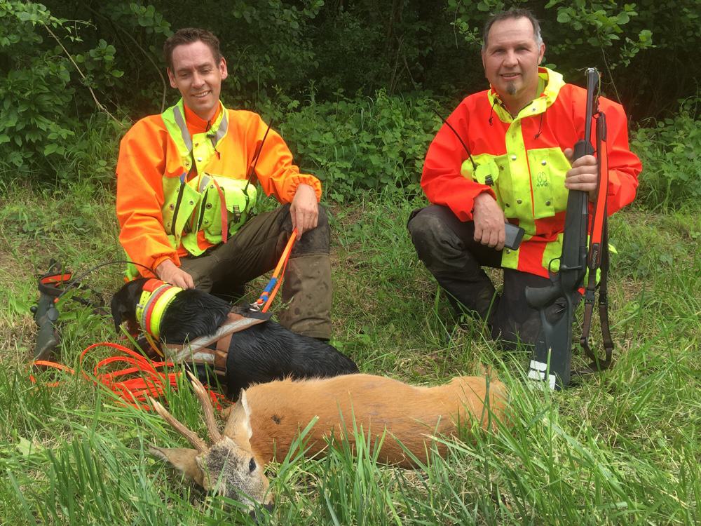 Nach vielen Versuchen mit den verschiedenen Jacken bin ich letztlich – wie auch meine Kollegen der Nachsuchenstation Schwäbischer Wald und des Nachsuchenringes Heckengäu – bei dem von Kerstin Aff unter dem Produktnamen Soonwald hergestellten Modell geblieben. Der Grund ist recht einfach – diese Jacke hat einfach alles, was man benötigt und zudem bietet der Hersteller die Möglichkeit, eigene Features einzubringen.